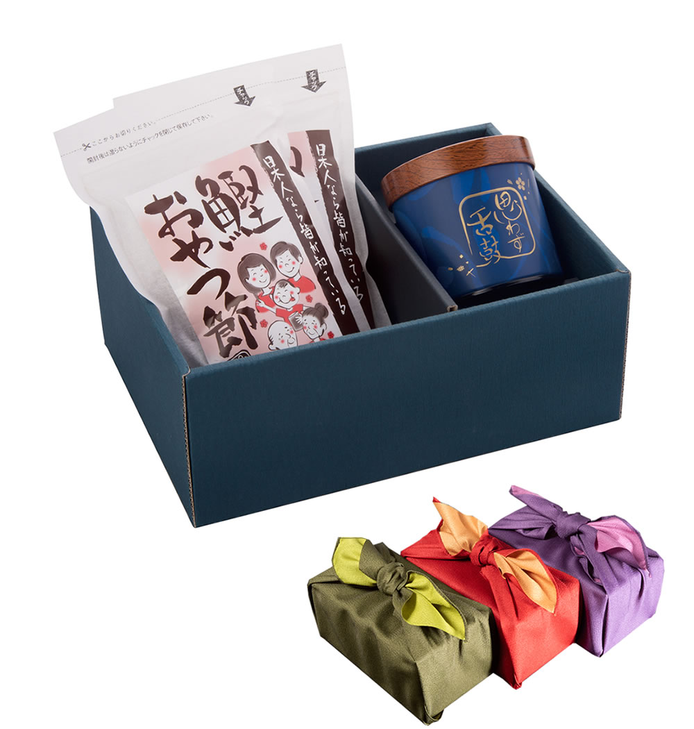 こちらの商品は風呂敷(赤・緑・紫)をお選びいただけます。ご希望がございましたら、備考欄にご記入ください。