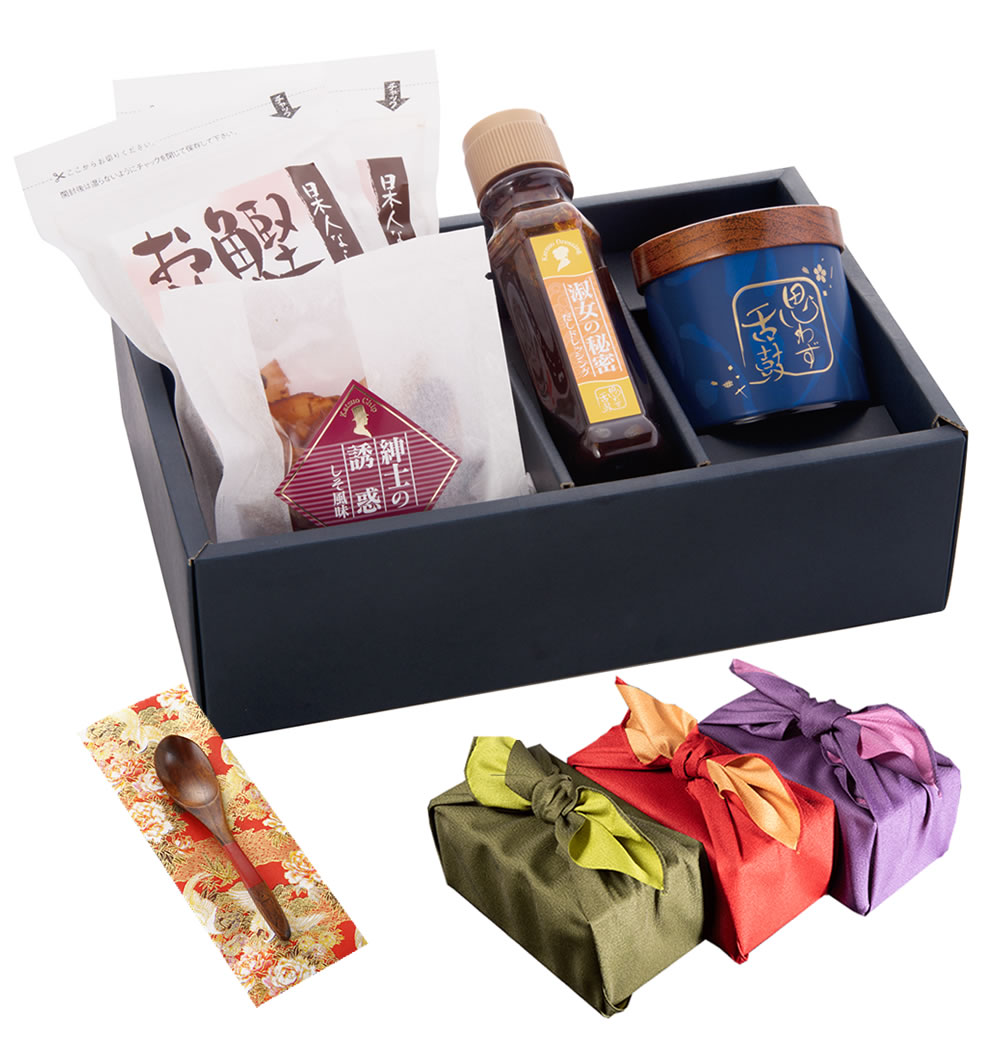 口どけ、淑女の秘密、紳士の誘惑、おやつ節のセット商品です。
