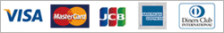 VISA・MASTER・JCB・AMERICAN EXPRESS・DINERSのロゴマークのあるカードがご利用いただけます。